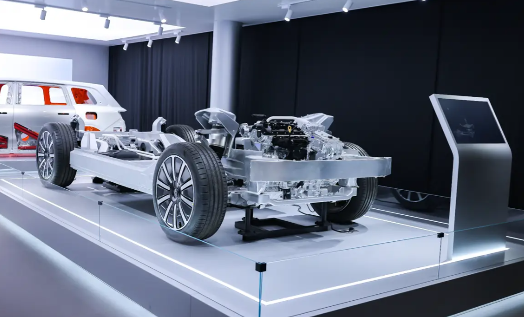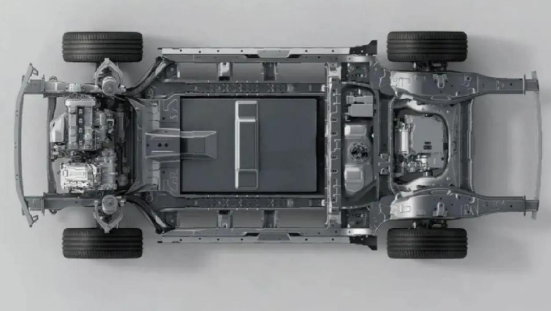 这套“分布式电驱增程”架构采用上下层布局:上层为增程发电系统,下层为双电机驱动单元,实现了前舱“6芯布置”——发动机、发电机、两台驱动电机、两台云辇电池共处一室的空间突破,模块厚度较传统纵置布局减少40%,为整车底盘布置创造了更大自由度。